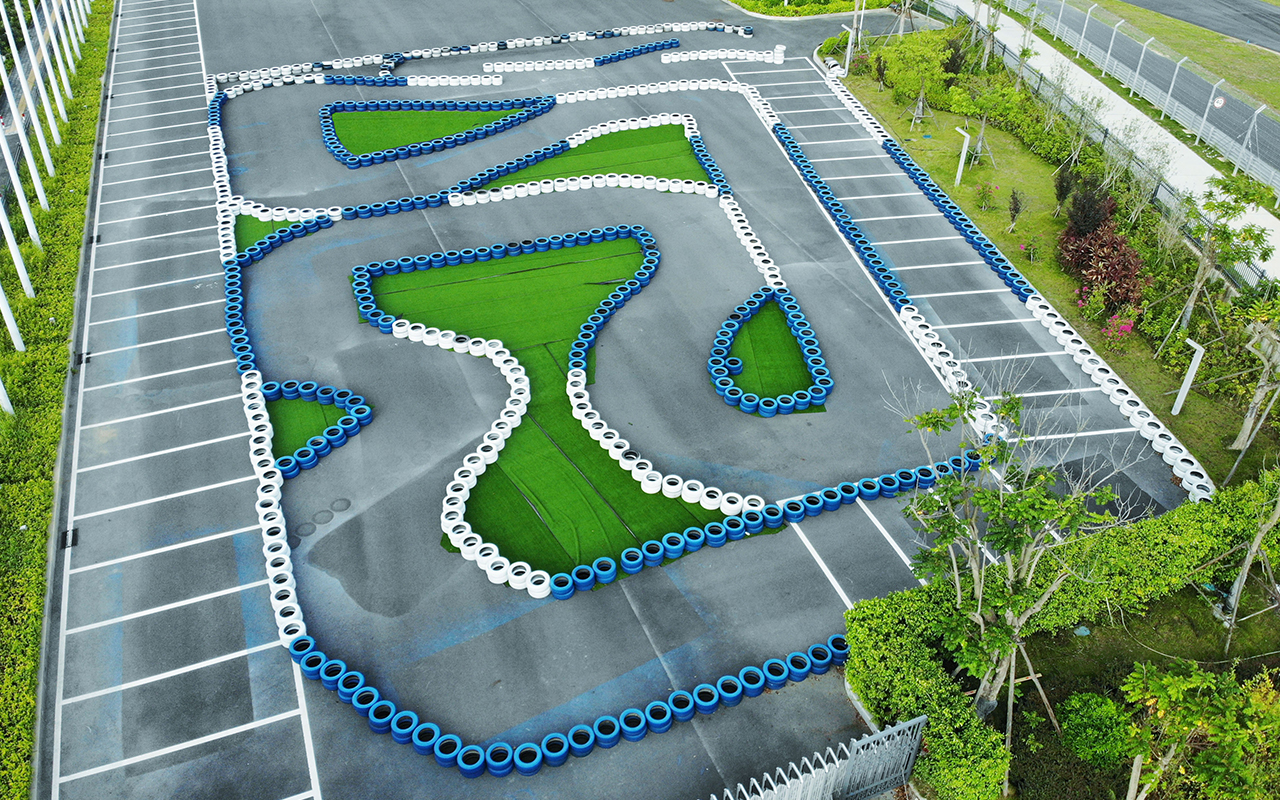 越野卡丁車場地占地3300平,全長約328米,共設(shè)32個(gè)彎道