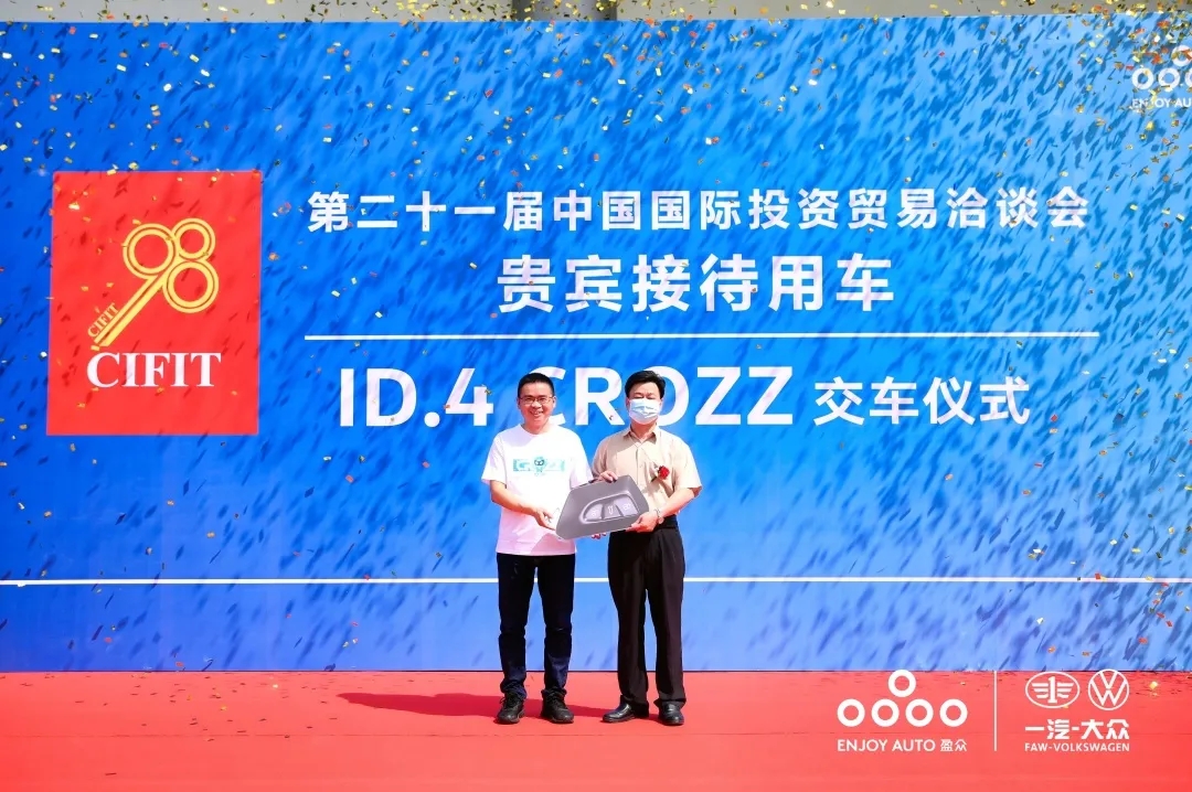 交車儀式上,廈門市機(jī)關(guān)事務(wù)管理局副局長鄭瑞文先生從盈眾控股集團(tuán)副董事長孫聘仁先生手中接過車鑰匙,現(xiàn)場整齊劃一的ID.4 CROZZ車隊(duì)整裝待發(fā),正式開啟服務(wù)第二十一屆中國國際投資貿(mào)易洽談會的使命旅程。