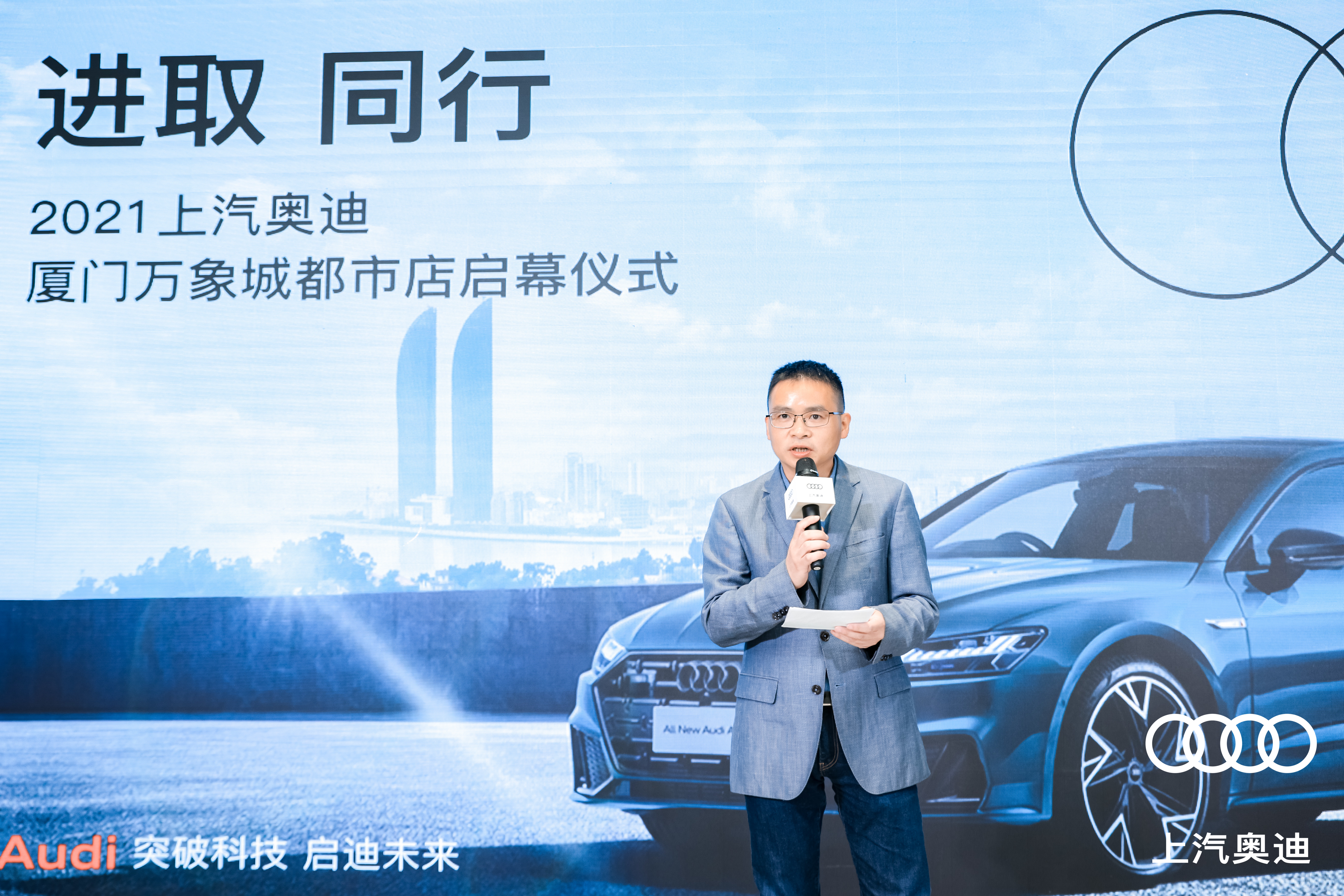 盈眾控股集團副董事長孫聘仁對上汽奧迪品牌以及雙方未來的合作前景充滿信心和期待。“上汽奧迪廈門萬象城都市店是盈眾集團代理的第一家上汽奧迪都市店,也是福建首家上汽奧迪都市店。從籌建之初,盈眾對此就保持著高度重視,旨在通過本店,與上汽奧迪進取、同行,一起放開想象,開創(chuàng)汽車新時代。”孫總在致辭中還強調(diào),“相信廈門萬象城都市店的開業(yè),能夠為廈門區(qū)域客戶帶來更豐富的購車選擇和更美好的車生活體驗。盈眾上汽奧迪團隊,也將積極融入用戶生態(tài)圈,全面提升用戶全生命周期的每一個服務(wù)細節(jié),展現(xiàn)出盈眾與上汽奧迪的新品質(zhì)和新溫度。”