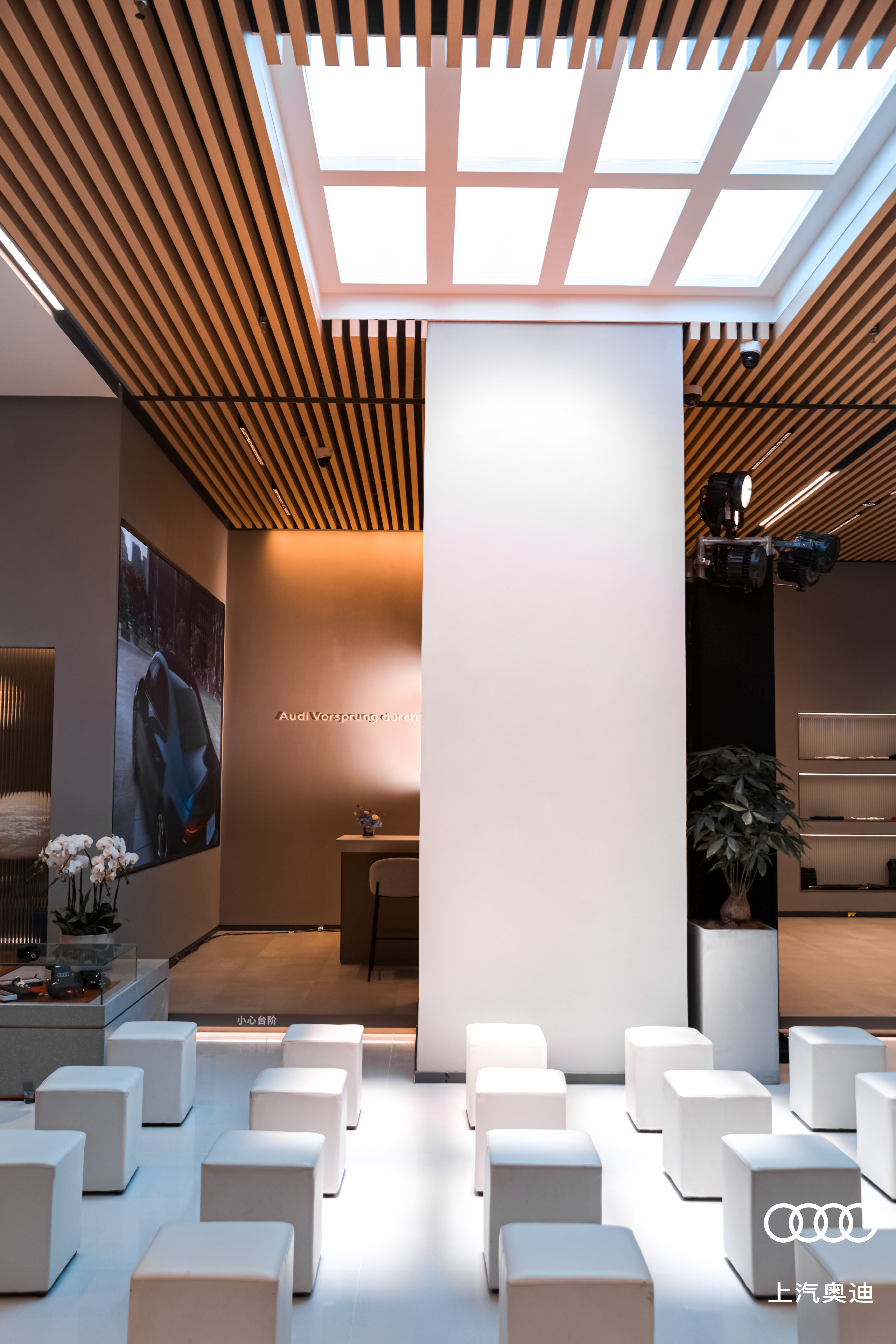 通透的全景落地玻璃,打破了空間的視覺局限,將奧迪品牌的科技感與生活感融為一體。獨立劃分出Audi Collection精品陳列區(qū),則用年輕人更喜愛、更容易產(chǎn)生共鳴的方式,展現(xiàn)出奧迪品牌所倡導(dǎo)的生活方式和時尚態(tài)度。