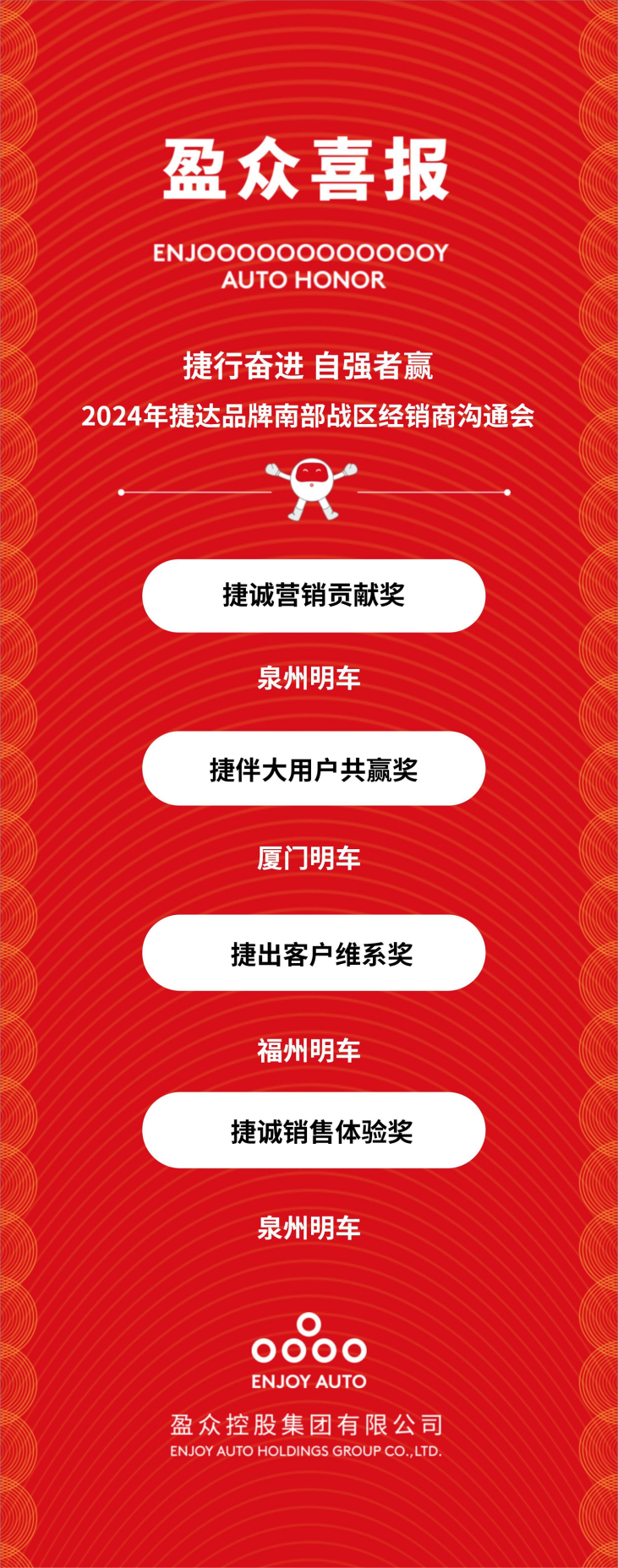 “捷誠(chéng)營(yíng)銷(xiāo)貢獻(xiàn)獎(jiǎng)”“捷伴大用戶(hù)共贏獎(jiǎng)”“捷出客戶(hù)維系獎(jiǎng)”“捷誠(chéng)銷(xiāo)售體驗(yàn)獎(jiǎng)”四個(gè)團(tuán)隊(duì)獎(jiǎng)項(xiàng)。