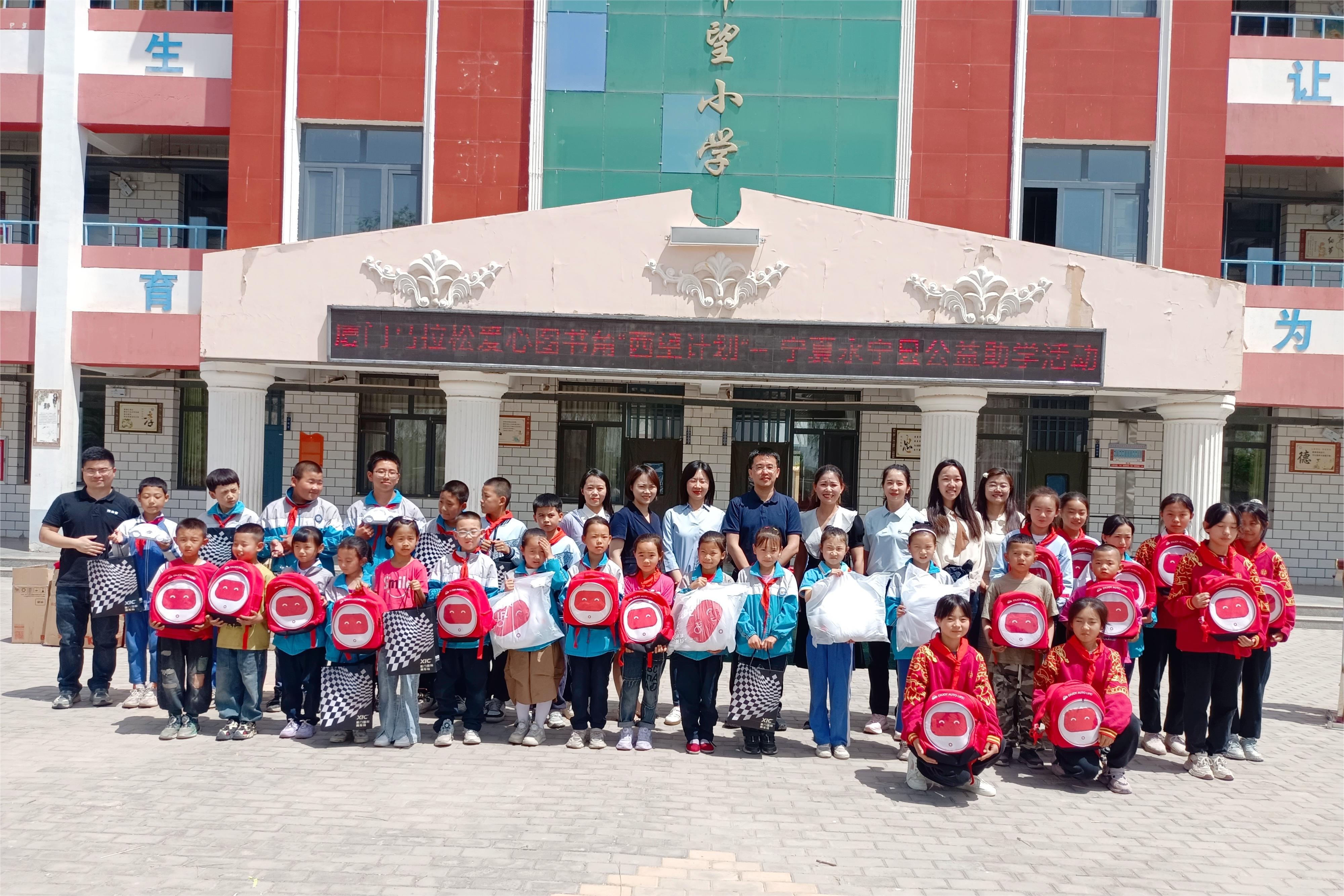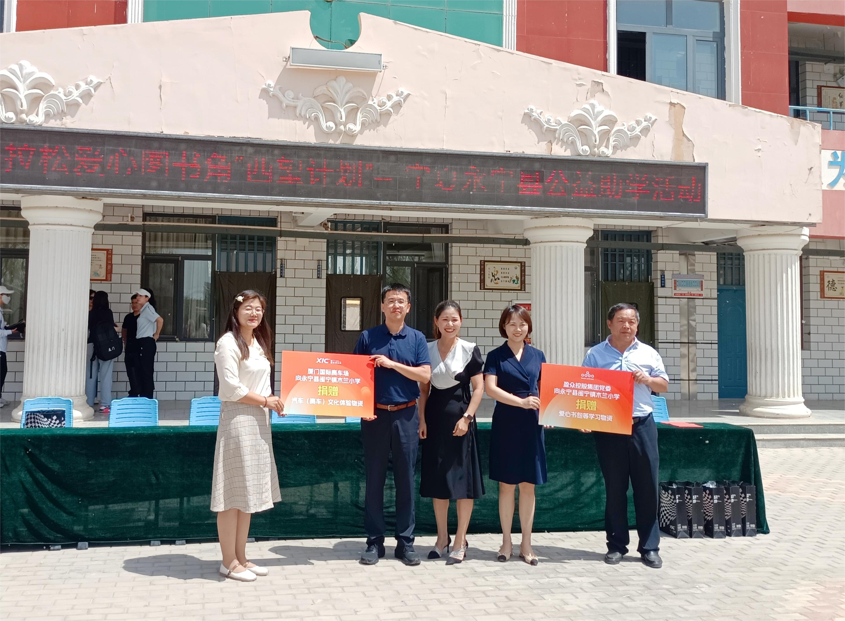 隨后一行人來到永寧縣閩寧鎮(zhèn)的木蘭小學(xué)、園藝小學(xué),了解公益圖書角的使用情況,并開展捐贈助學(xué)活動。盈眾控股集團(tuán)、廈門國際賽車場為永寧縣閩寧鎮(zhèn)木蘭小學(xué)捐贈了書包等學(xué)習(xí)用品、汽車及賽車文化體驗(yàn)用品,并為孩子們帶去生動有趣的賽車文化公益課堂。
