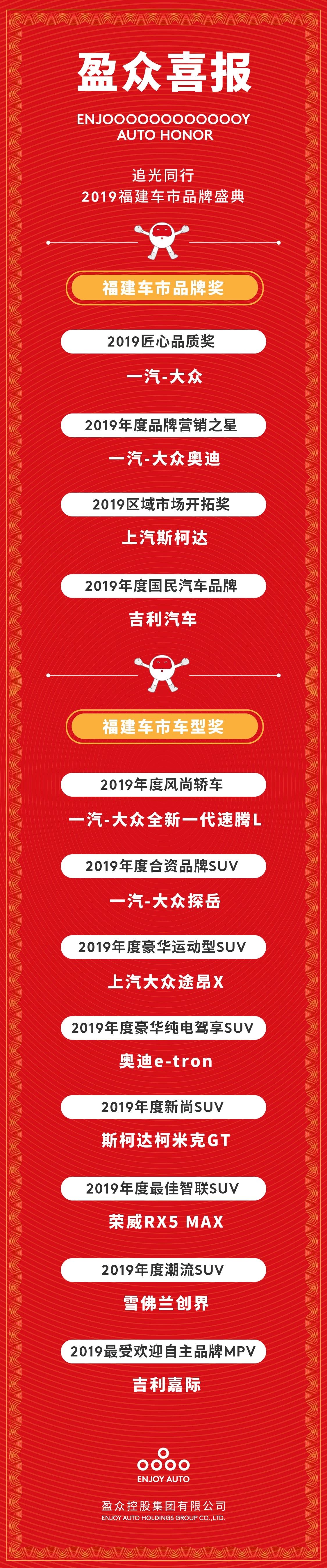 喜訊 | 盈眾榮獲2019福建車市品牌盛典“卓越經(jīng)銷商集團(tuán)”等多項大獎