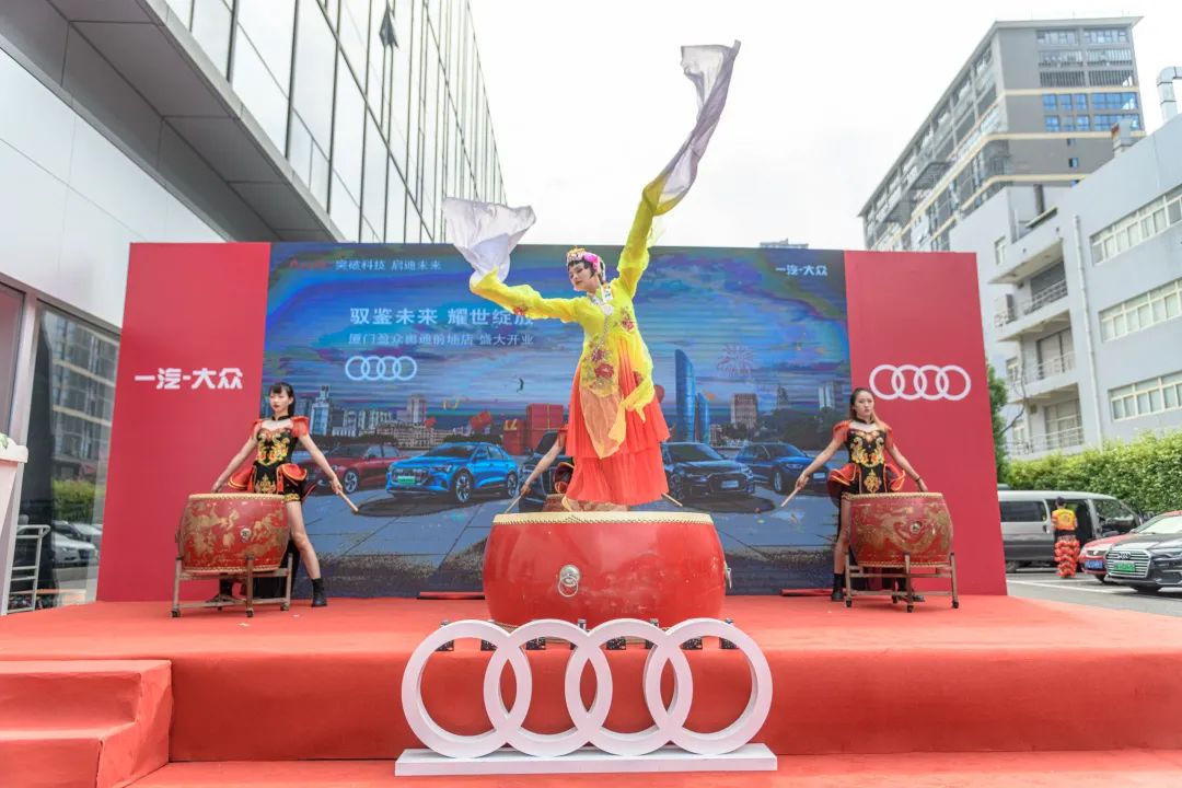 一汽-大眾奧迪銷售事業(yè)部東南區(qū)區(qū)域主管銷售經(jīng)理葉鵬、一汽-大眾奧迪銷售事業(yè)部東南區(qū)區(qū)域服務(wù)與二手車經(jīng)理包洋、廈門盈眾至遠(yuǎn)汽車銷售有限公司總經(jīng)理嚴(yán)勁松等,共同為廈門盈眾奧迪前埔店全新數(shù)字化體驗(yàn)中心剪彩慶賀。精彩紛呈的舞獅表演將現(xiàn)場(chǎng)氣氛推向高潮。