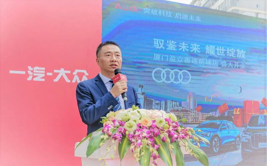 一汽-大眾奧迪銷售事業(yè)部東南區(qū)區(qū)域主管銷售經(jīng)理葉鵬向廈門盈眾奧迪送上了誠摯祝福,并且表達(dá)了自己的希冀:希望廈門盈眾奧迪前埔店全新數(shù)字化體驗(yàn)中心以其示范效應(yīng),帶動(dòng)一汽-大眾奧迪品牌在新區(qū)域的發(fā)展與蓬勃;也衷心希望廈門盈眾奧迪前埔店能夠不忘初心,砥礪前行,繼續(xù)為廣大客戶提供優(yōu)越的購車服務(wù),為盈眾集團(tuán)創(chuàng)造更多效益,也為一汽奧迪的份額做出更大的貢獻(xiàn)。