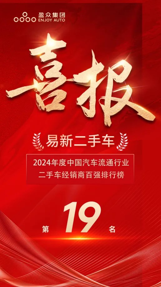 11月6-8日,2024中國汽車流通行業(yè)年會暨博覽會在蘇州舉行。在“渡困境 謀變局 啟新篇”主題引領下,此次會議集結業(yè)界精英、權威專家與領軍企業(yè),旨在深入剖析當前市場環(huán)境下的機遇與挑戰(zhàn),共謀未來發(fā)展新策略。 會上還公布了2024年度中國汽車流通行業(yè)二手車經(jīng)銷商百強排行榜,盈眾旗下易新二手車再次上榜,榮膺百強企業(yè)第19名。
